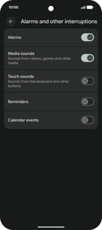 Press the required settings to turn sound and vibration for the selected functions on or off.