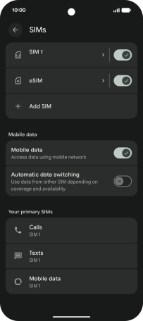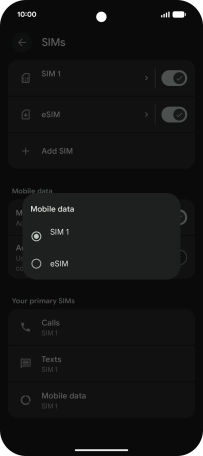 5. Select default SIM for mobile data
