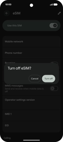 If you turn off use of the SIM, press Turn off.