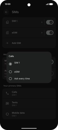 3. Select default SIM for voice calls