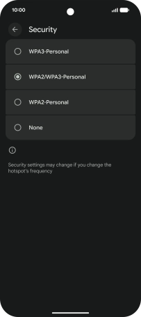 Press WPA3-Personal to password protect your Wi-Fi hotspot.