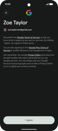 Press I agree and follow the instructions on the screen to select settings for your Google account.