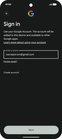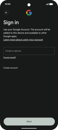 If you don't have a Google account, press Create account and follow the instructions on the screen to create an account.
