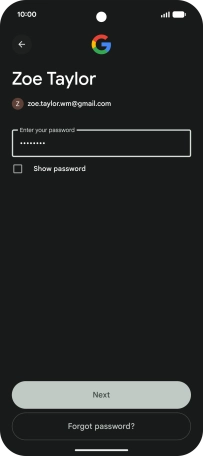 Press the field below "Enter your password" and key in the password for your Google account.