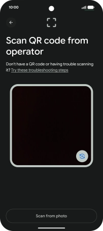 Place the QR code you've received inside the phone camera frame to scan the code. Your eSIM is transferred to your new phone over the internet.
