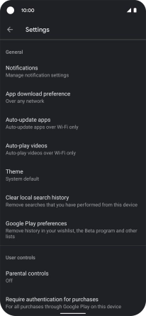 To turn on automatic update of apps using Wi-Fi, press Over Wi-Fi only.