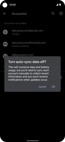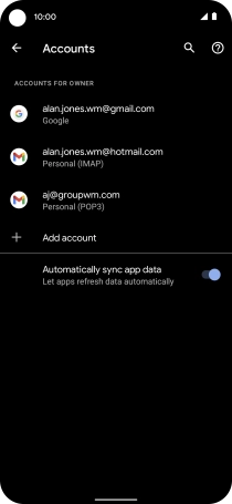 Press the indicator next to "Automatically sync app data" to turn the function on or off.