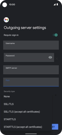 Press the field below "Username" and key in the username for your email the email provider's outgoing server.