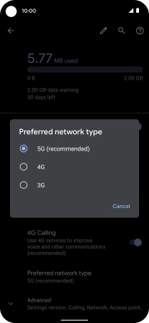 Press Preferred network type.