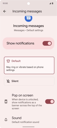 Press the indicator next to "Incoming messages" to turn on the function.