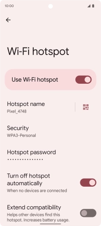 Press the indicator next to "Use Wi-Fi hotspot" to turn on the function.