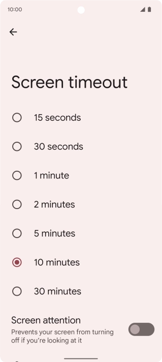 Press Screen timeout.