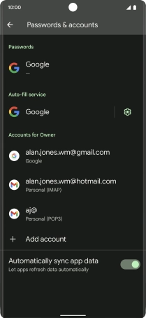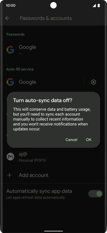Press the indicator next to "Automatically sync app data" to turn the function on or off.