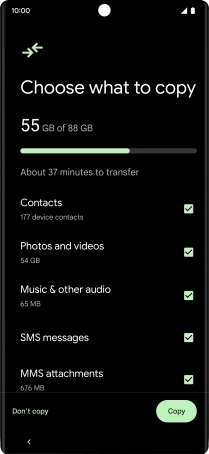 Press Copy and follow the instructions on the screen to transfer the content from the other phone and finish the activation of your phone.