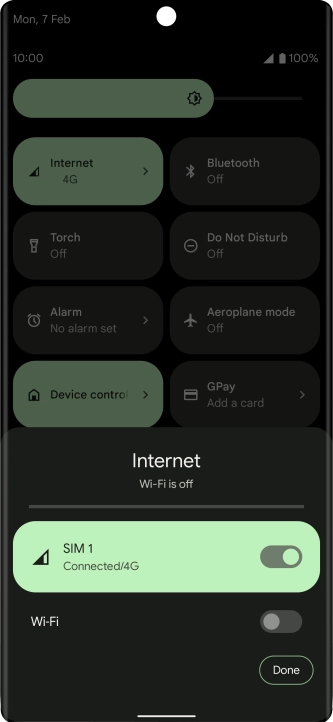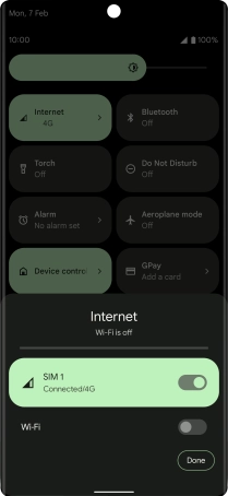 Press the indicator next to "Wi-Fi" to turn the function on or off.