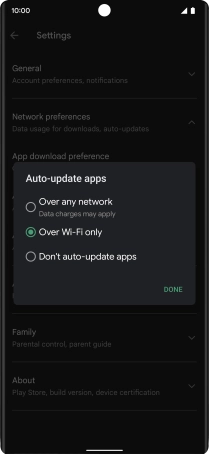 To turn on automatic update of apps using mobile network, press Over any network.