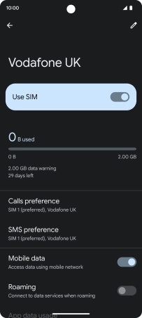Press the indicator next to "Use SIM" to turn use of the price plan on or off.