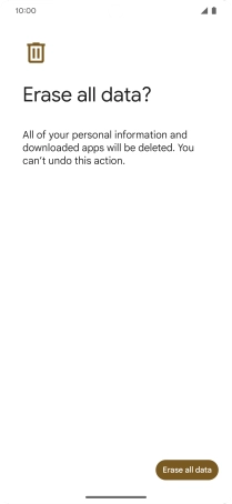 Press Erase all data. Wait a moment while the factory default settings are restored. Follow the instructions on the screen to set up your phone and prepare it for use.
