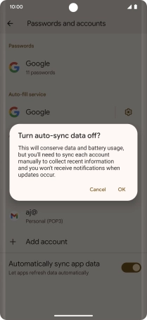 Press the indicator next to "Automatically sync app data" to turn the function on or off.