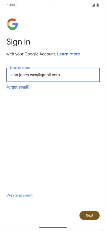 If you don't have a Google account, press Create account and follow the instructions on the screen to create an account.