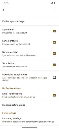 Press the field next to "Sync email" to turn on the function.
