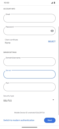 Press Password and key in the password for your email account.