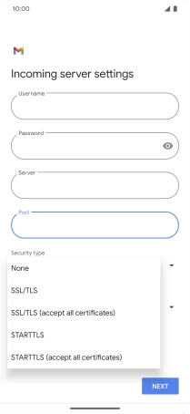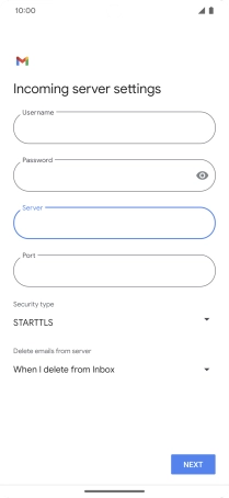 Press the field below "Server" and key in the name of your email provider's incoming server.