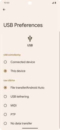 2 Choose setting for USB connection