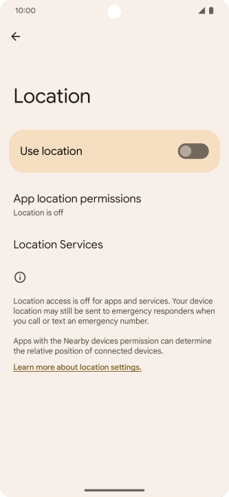 Press the indicator next to "Use location" to turn the function on or off.