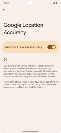If you press the indicator next to "Improve Location Accuracy" to turn off the function, your phone can find your exact position using the GPS satellites but it may take longer as there is no access to supplementary information from the mobile network or nearby Wi-Fi networks.