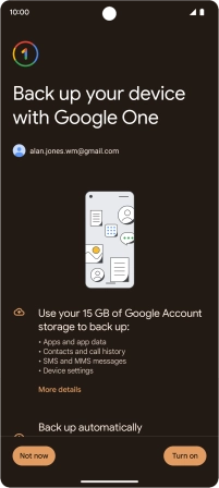 The phone memory will be backed up automatically when your phone is charging, the screen lock is turned on and a Wi-Fi connection is established.