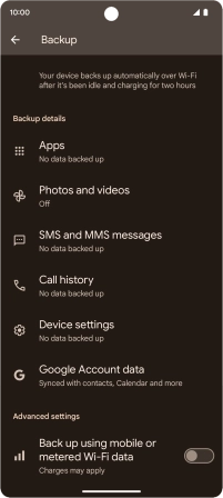 Press the indicator next to "Back up using mobile or metered Wi-Fi data" to turn the function on or off.