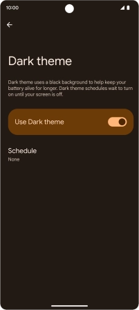 Follow the instructions on the screen to select the required period of time for dark mode.