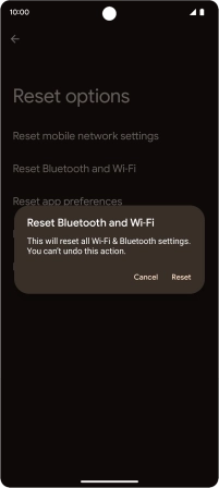 Please note that all saved Wi-Fi and Bluetooth connections and passwords, you've created, are deleted.