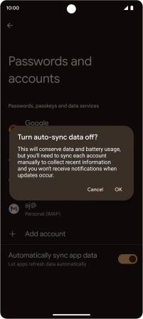 Press the indicator next to "Automatically sync app data" to turn the function on or off.