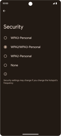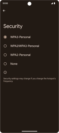 Press WPA3-Personal to password protect your Wi-Fi hotspot.