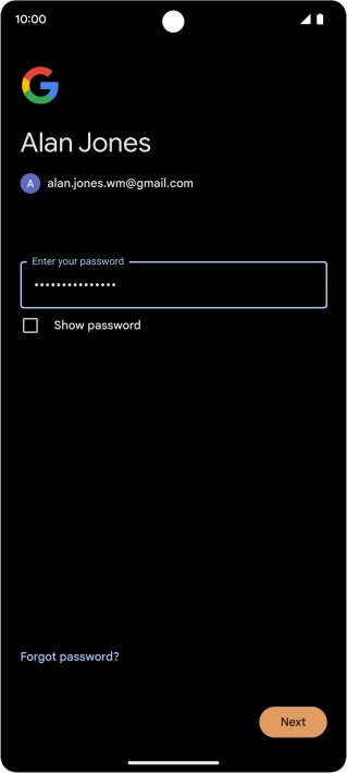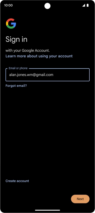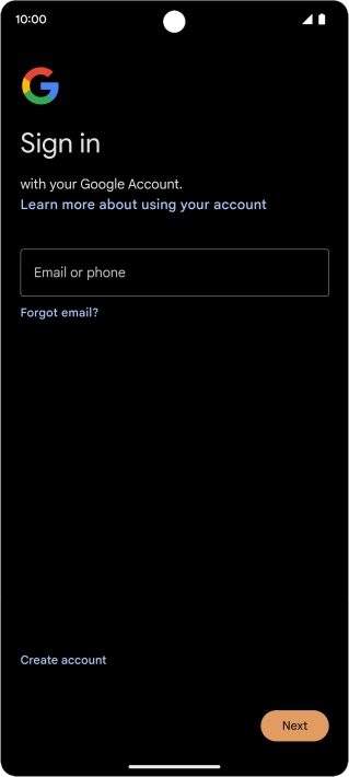 If you don't have a Google account, press Create account and follow the instructions on the screen to create an account.