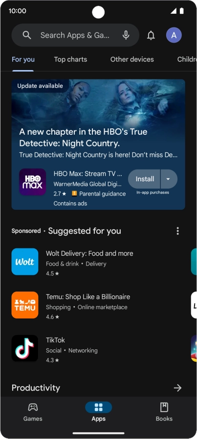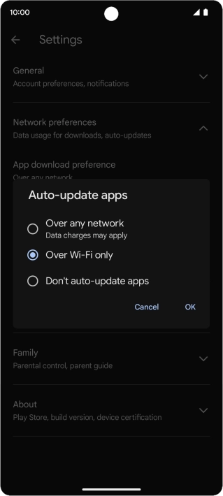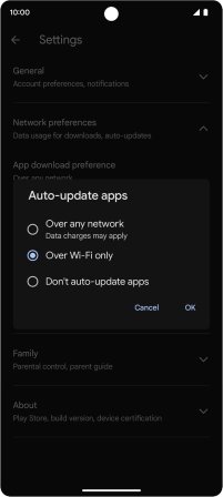 To turn on automatic update of apps using mobile network, press Over any network.