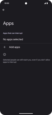 Press Add apps and follow the instructions on the screen to select which apps you would like to receive notifications from when Do Not Disturb is turned on.