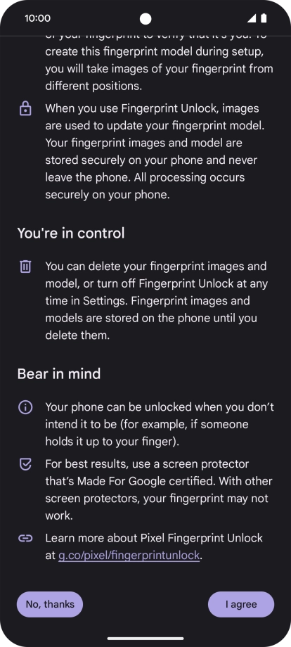 Follow the instructions on the screen to create the phone lock code using your fingerprint.