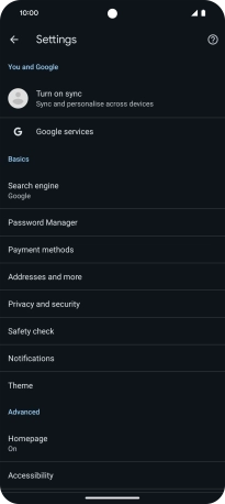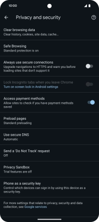 Press Privacy and security.