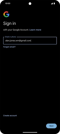 If you don't have a Google account, press Create account and follow the instructions on the screen to create an account.