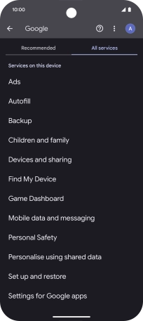 Press Settings for Google apps.