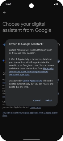 Press Google Assistant features in Gemini and follow the instructions on the screen to turn use of Google Assistant functions on or off.