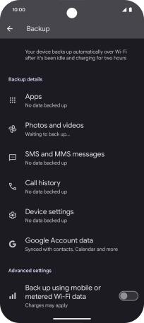 Press the indicator next to "Back up using mobile or metered Wi-Fi data" to turn the function on or off.