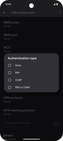 9. Enter APN type