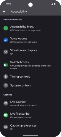 Press the required category below "Interaction controls" and follow the instructions on the screen to select the required settings.