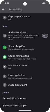 Press the required category below "Screen reader" and follow the instructions on the screen to select the required settings.