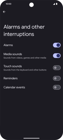 Press the required settings to turn sound and vibration for the selected functions on or off.