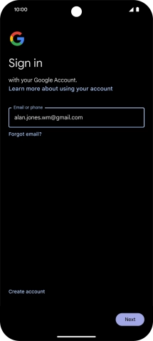 If you don't have a Google account, press Create account and follow the instructions on the screen to create an account.